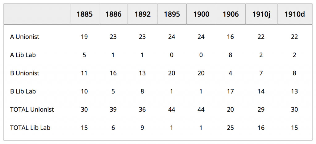 The franchise and electoral system change in 1885 accelerated this process. The big cities were divided into single member constituencies, and the villa suburbs were large enough to be the dominant influence in a significant minority of these seats.